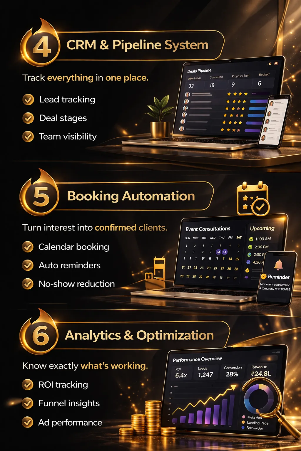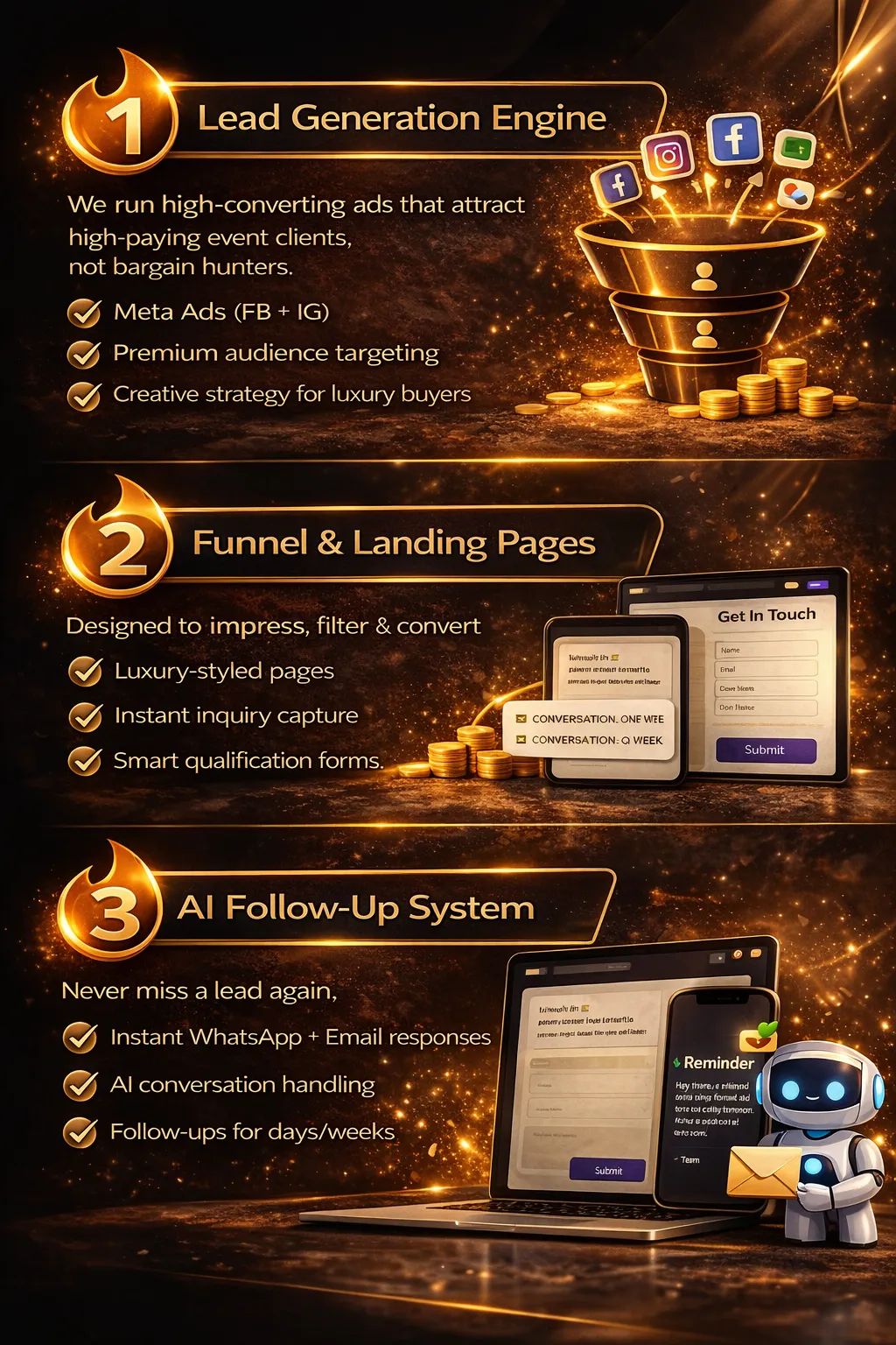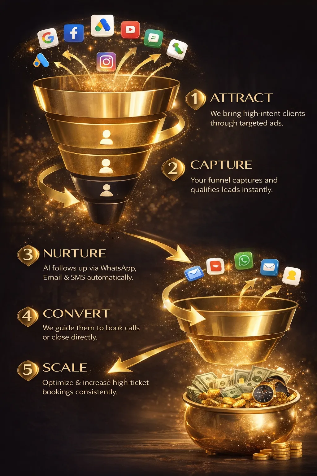 AI-powered funnels that attract premium clients, nurture them automatically, and convert them into high-ticket bookings — without chasing leads manually.